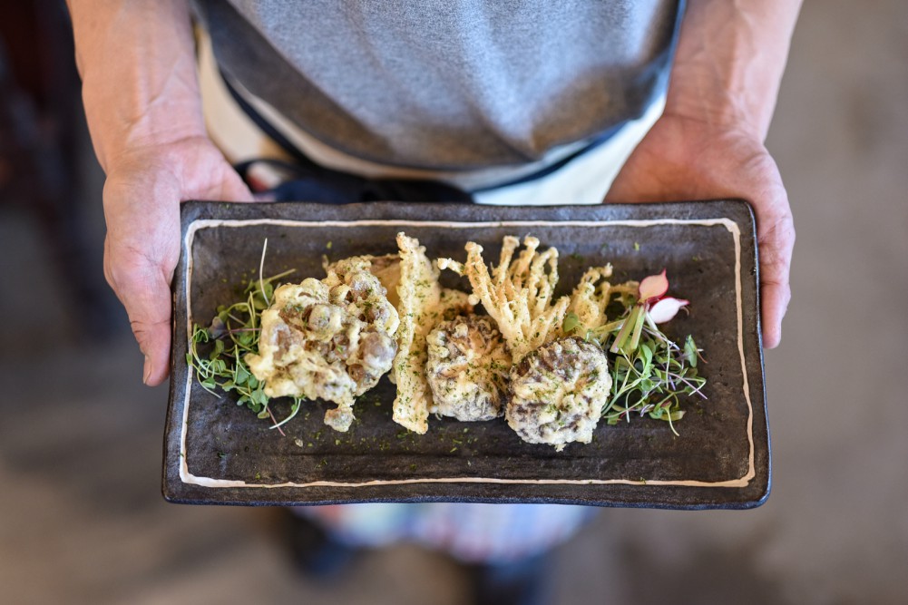 Los entrantes son un mundo de sabor. Al margen de los edamanes o el miso, que animan a pecar de gula, nuestra devoción por el Takowasa, un pulpo marinado espectacular, le han conviertido en un must del local. A su lado un inesperado cangrejo de río de nombre Sawagani no puede faltar. El siguiente plato puede proceder de su variedad exquisita de tempuras pero si quieres descubrir un Japón indómito déjate seducir por las especialidades de la casa. Entre ellas destaca el Karaage, un pollo frito rebozado de dulzura que te hará olvidar todos los que has conocido hasta ese momento. Otra maravilla culinaria que parece sacada de un jardín japonés es el Kaki Furai, una preciosidad con sabor a ostras de Hiroshima.